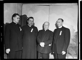 Photo caption from published version of 51-2384_001: "FORMER PASTORS - Former pastors of the Church of the Transfiguration gathered yesterday at the church to assist in a 25th anniversary celebration. Left to right are Rev. Basil Filevitch of Toronto, Rev. Basil Humeniuk, of Windsor, Msgr. P.J. Kamenesky of Toronto, who served the church during the formation period, and Rev. Michael Ziac, present pastor."