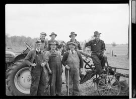 Group of six men standing in an intersection in Woodstock, Ontario, tentatively identified as either Ingersoll Ave. or Vansittart Ave. The man at the extreme right is probably R.D. Montgomery.